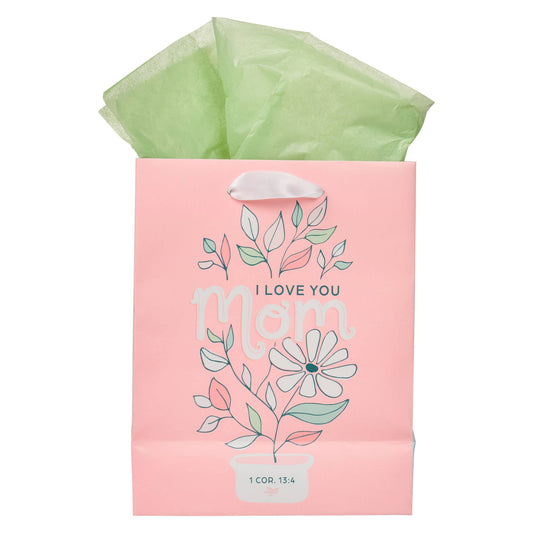 I Love You Mom Daisy Medium Gift Bag - 1 Cor. 13:4