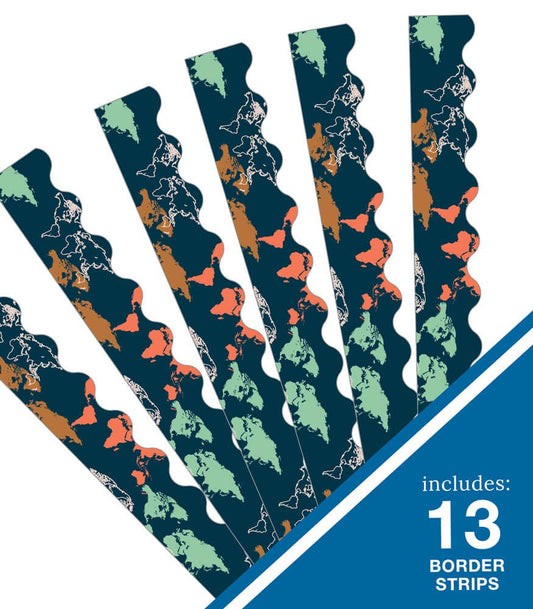 Let's Explore World Map Scalloped Bulletin Board Borders
