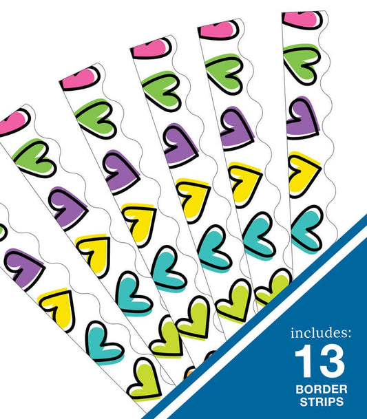 Kind Vibes Doodle Hearts Scalloped Bulletin Board Borders