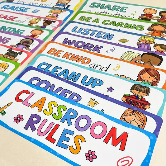 16-Piece Classroom Rules Poster Set - Good Habits Chart & Bulletin Board Decor
