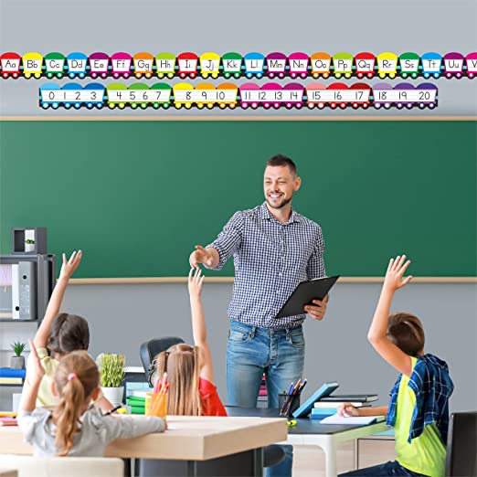 Alphabet Bulletin Board Set, 15 PCS Train Die-Cut ABC Wall Decorations 26 Upper & Lower Case Letters Plus 0-20 Numbers