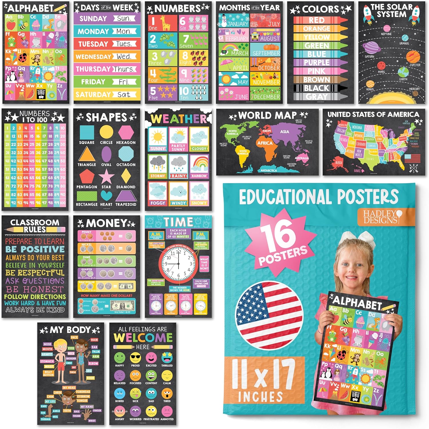 - Make Learning Fun; You'll receive 16 different 11x17" laminated educational posters; so your classroom will never be boring again; Get students excited to learn with these preschool learning posters/preschool educational posters for kindergarten
