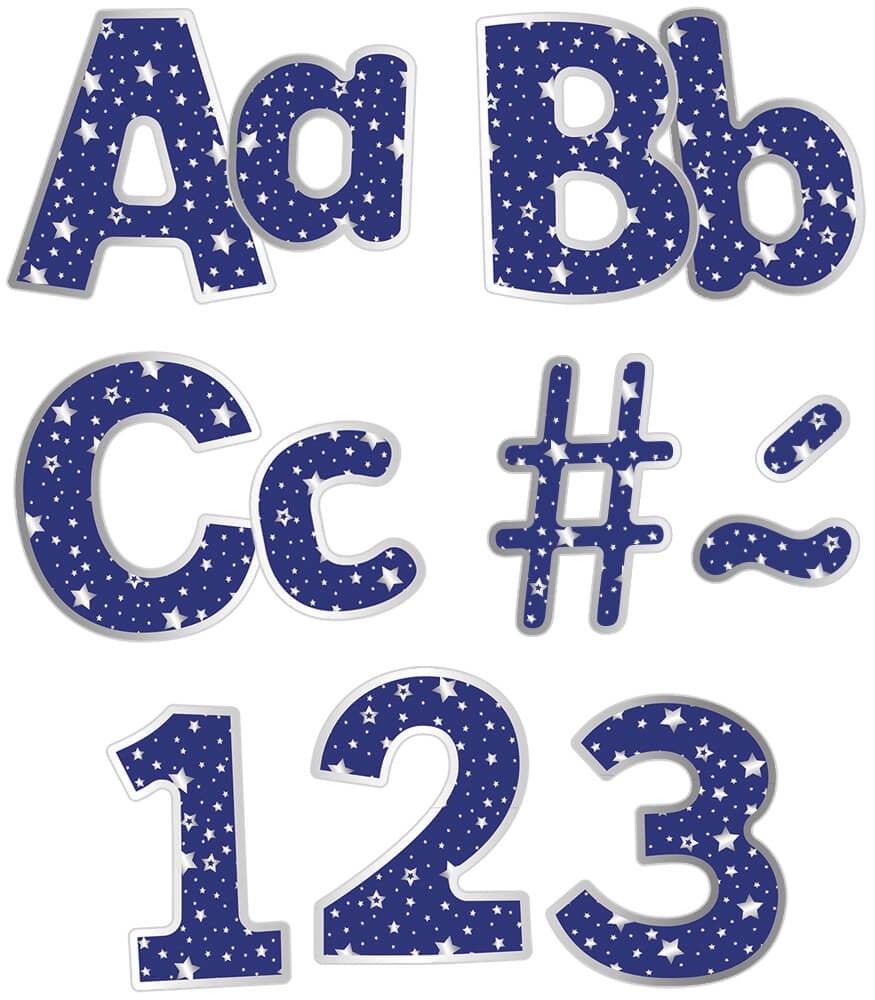 Create dazzling displays with Sparkle + Shine Navy with Silver Stars EZ Letters. This 219-piece set includes these 4" characters: