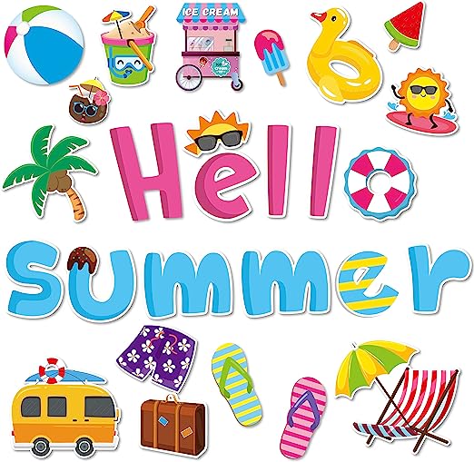 - Hello Summer Decor: Vibrant summer is coming. Use these cutouts to decorate your home, classroom, or any environment around you, create a summer vibe, and say hello to summer!