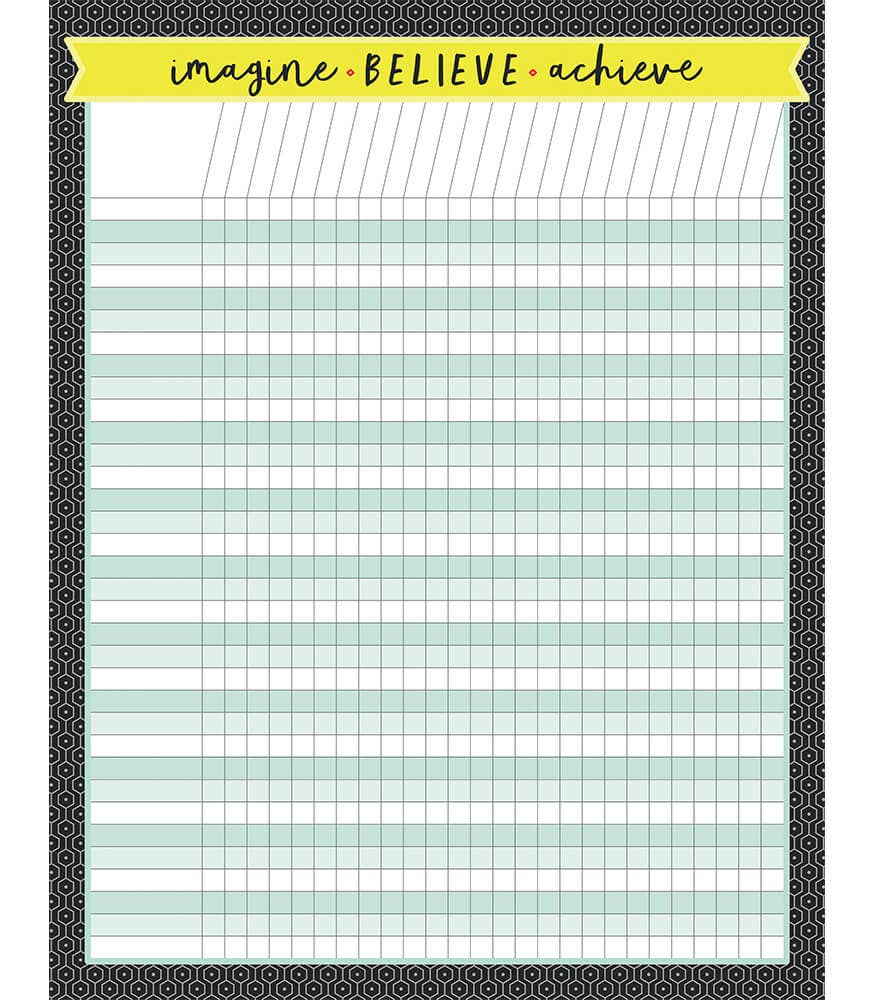 Recognize students’ efforts with the Aim High incentive chart. This customizable 17" x 22" chart features a separate writing space for each student’s name. --Monitor progress and motivate hard work with Carson-Dellosa’s incentive charts for kids. Available in a variety of themes and colors, these charts are perfect for your classroom. Look for coordinating Aim High products to create a unified classroom theme.