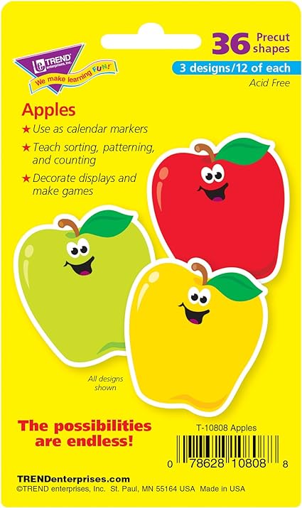 - A-peel-ing smiling apples are precut and ready to use in yellow, red, and green.