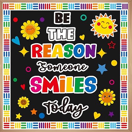 - Bulletin Board Decoration Kit】Includes individual cutouts for the phrase “Be The Reason Someone Smile Today”, 4 cutouts in sun and sunflower pattern, 25 x colorful classroom borders, 120 x stickers confetti. This decoration set is ready to be use in your classroom today!