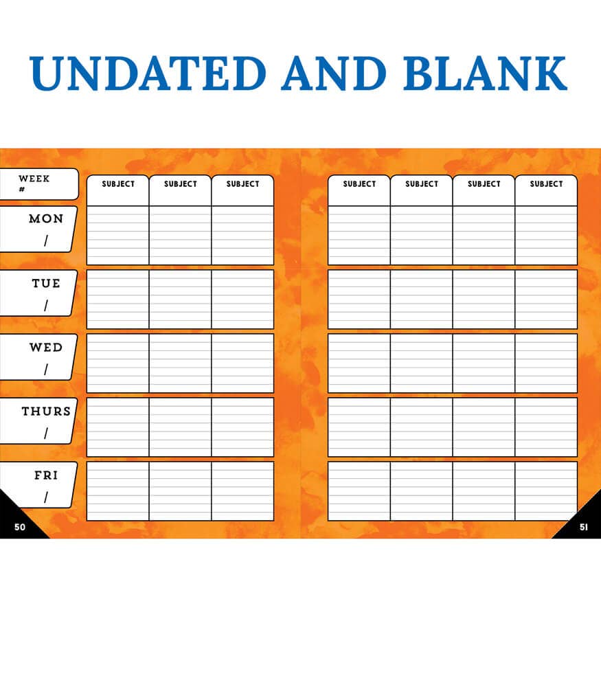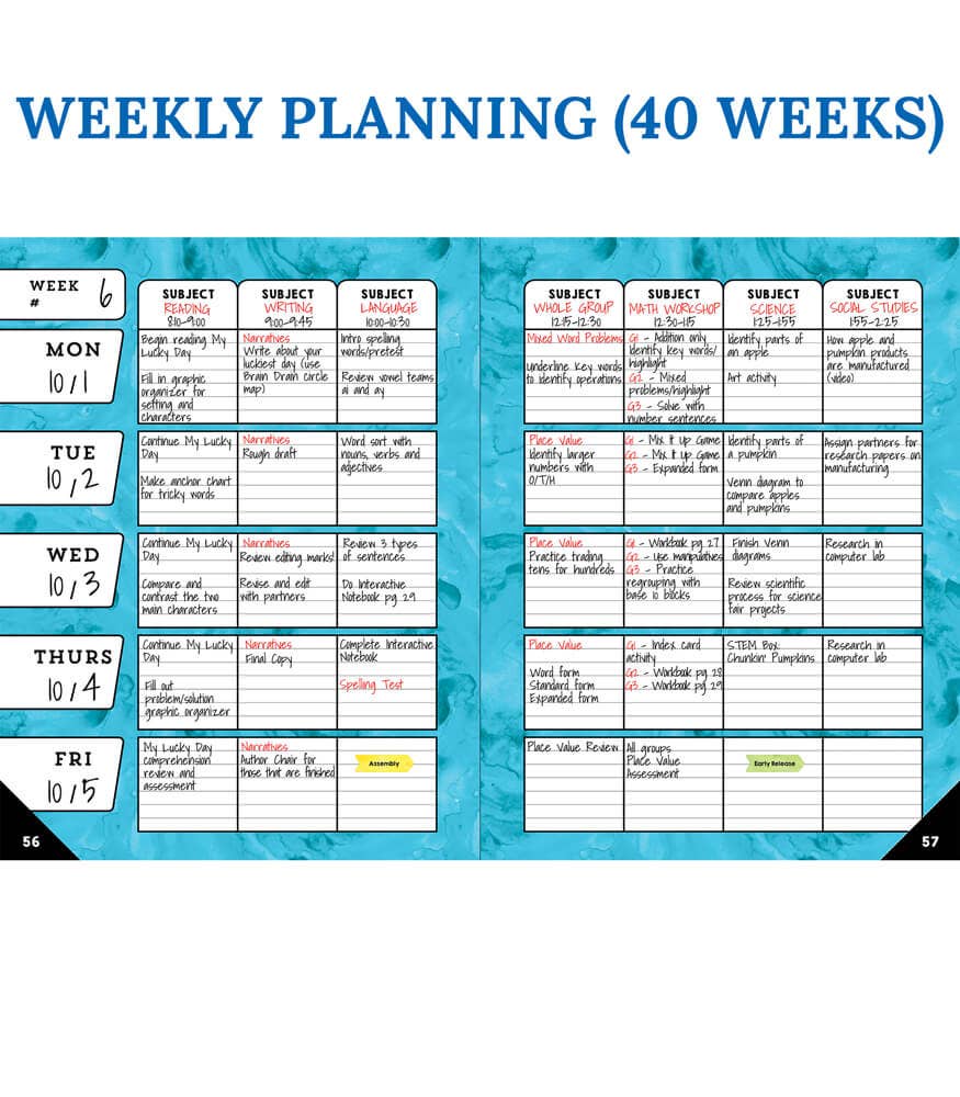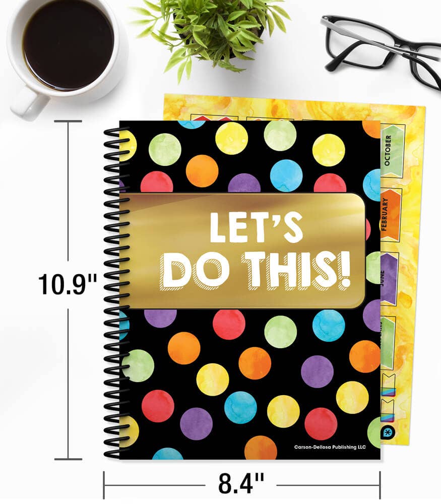 The 128-page Carson Dellosa Celebrate Learning Teacher Planner is the perfect way to organize each lesson plan and all of your daily tasks, monthly and yearly schedules, grades, and more with ease. The spiral-bound, 8" x 11" undated planner has everything you need to set your school year up for success, including undated yearly goal planning, monthly calendars, and weekly lesson plans. Communication logs, checklist pages, contact pages, substitute information, and a notes section are also included in the daily, weekly, and monthly planner, giving you ample space to jot down important information in an organized fashion. This lesson planner book also includes 116 planner stickers, including 16 tab, 9 to-do list, 64 reminder, 6 note, and 21 planner accessories stickers to customize, organize, and track progress in your teacher planner in a fun and stylish way.