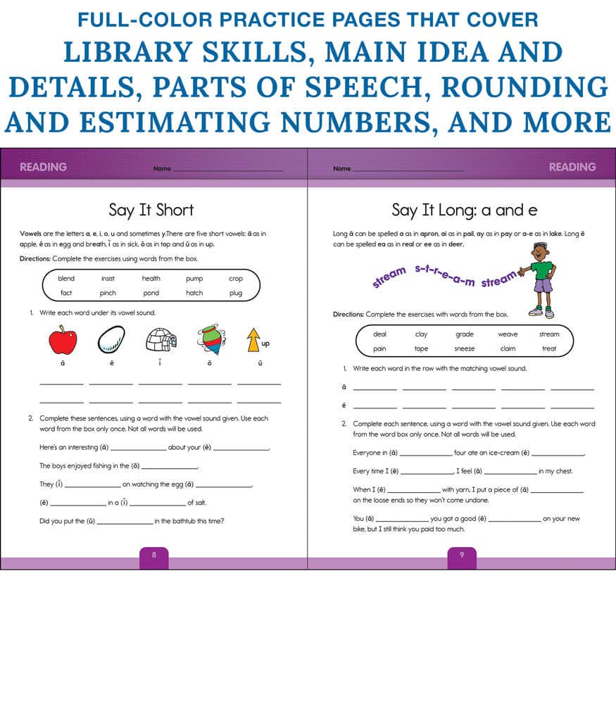 The Complete Book of Fourth Grade helps kids learn and enhance essential reading, writing, and math skills to prep for fifth-grade success. This 256-page book offers a full complement of instruction and grade-appropriate activities covering library skills, main idea and details, parts of speech, rounding and estimating numbers, and more. Students will solve problems, learn and practice new grammar concepts and research skills, and more through fun exercises and lessons. The full-color pages feature clear, step-by-step instructions to follow along with each new task independently. Quality content and fun features set Complete Book Of apart, making it popular with both parents and children. Parents will value the motivating activities and extra features, such as a poster and stickers, that make learning fun and engaging for their child. Designed by leading experts, this is the perfect tool to enrich what children are learning at school or to supplement any homeschool curriculum.