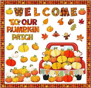 - Fall Bulletin Board Decorations Set: you will get 98 pieces of fall bulletin board decorations, including 10 word cards, 1 banner, 40 pumpkin cutouts in 2 sizes, 1 truck cutouts, 12 honeycomb, 10 decoration cards, 24 borders and 7 sheets of adhesive dots; The sufficient quantity provides you to decorate your school, classroom door, bulletin board, etc
