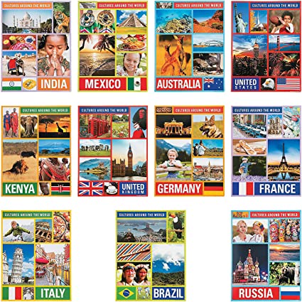 Fun Express Cultures Around The World Posters - 12 Pieces - Diversity and Multicultural Classroom Decor