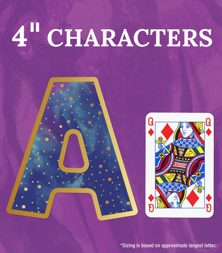 Add out-of-this-world messages to classroom decorations, bulletin boards, cork boards, and other galaxy décor and space décor using the Carson Dellosa Galaxy Marble Bulletin Board Letters Pack! The 219-piece letters for bulletin board set includes 70 uppercase and 87 lowercase wall letters, 20 numbers, 20 punctuation marks, and 22 symbols with a marble and gold design. Each of the letters, numbers, punctuation, and symbol bulletin board decorations measures 4” tall and features a gold glitter dot pattern—the perfect size for alphabet wall decals, party or classroom décor, bulletin board décor, locker décor, and office décor. Use the cut out letters to create a letter board, display board, alphabet line for classroom wall, and number line for classroom wall, or decorate cork board, bulletin board, chalk board, cubby, and poster boards with ease.