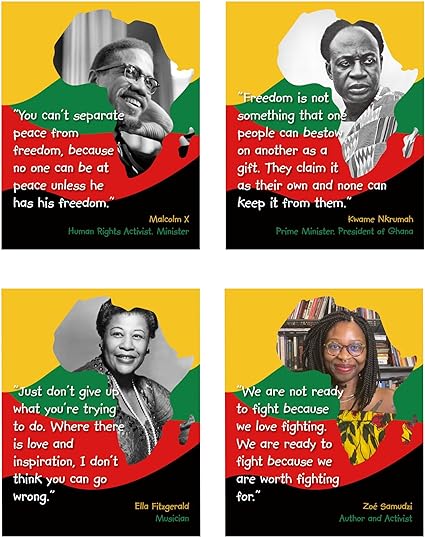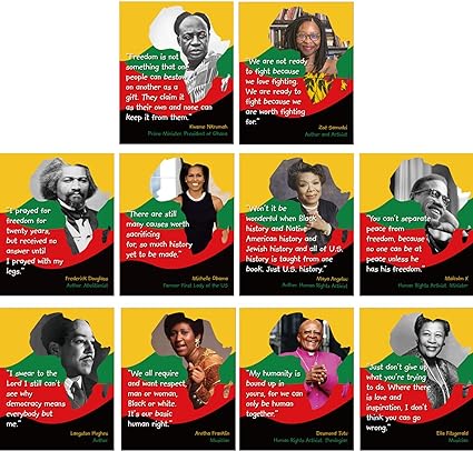 - Includes 10 poster. Each poster features a striking design with a Juneteenth flag and highlights a prominent figure from the Black community, including activists, writers, and artists.