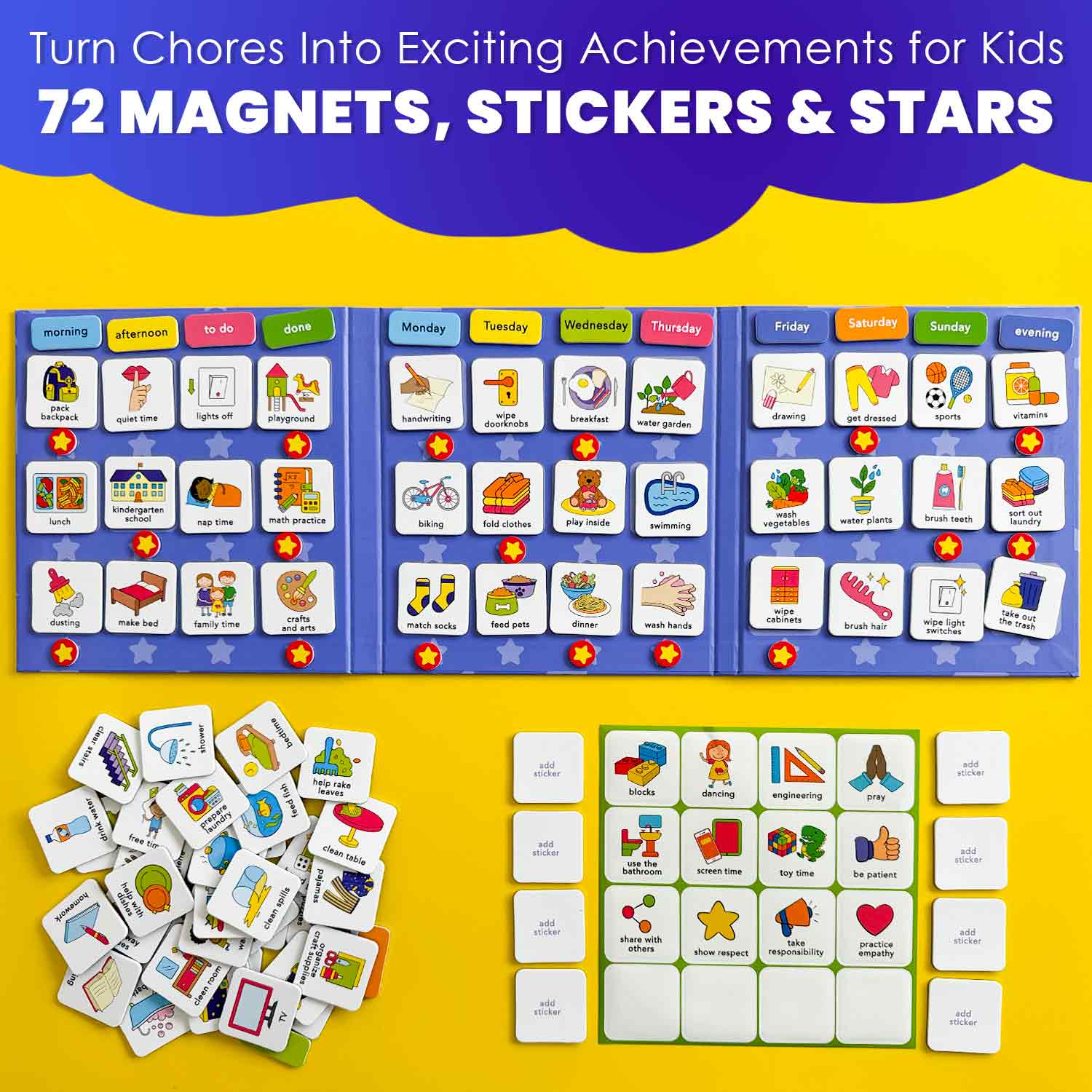 Magnetic Chore Chart for Kids | 72 Routine Magnets & Star Rewards