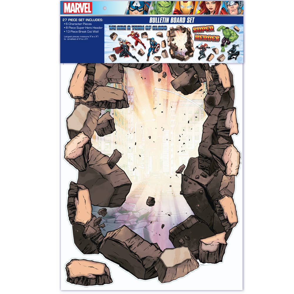 •What's Included - 1 Rock Blast, 12 rock cutouts, 6 Marvel™ character cutouts, and an 8-piece We Are A Class Team of Super Heroes header. Packaged as 4 17" x 24" panels.