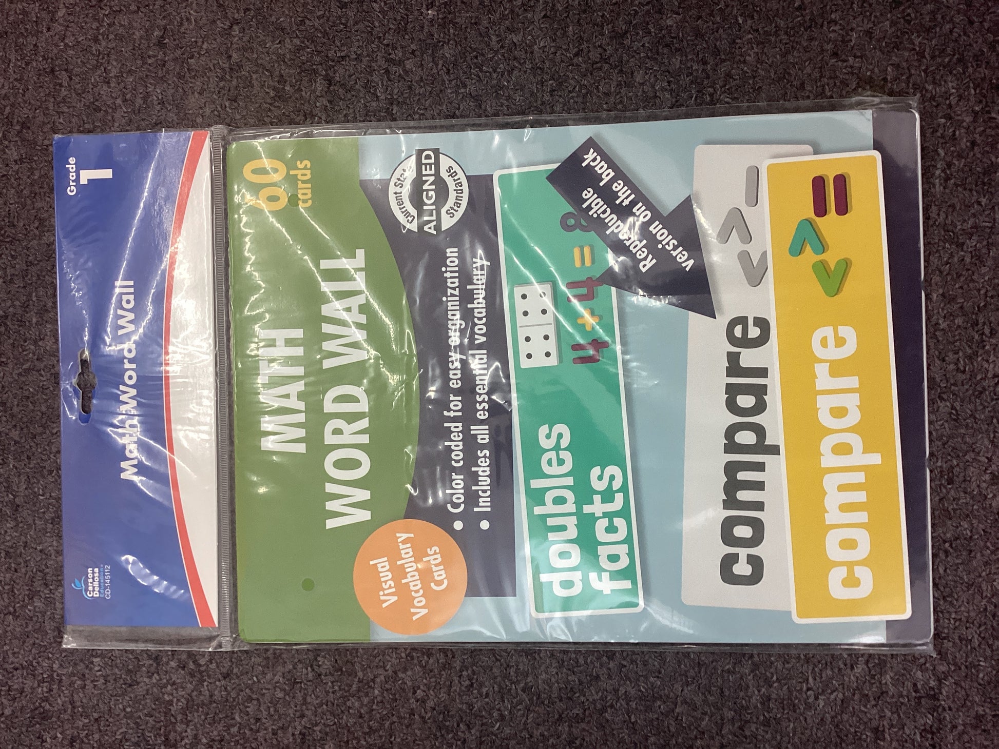 Color coded, easy to read text makes the Math World Wall Grade 1 learning cards perfect for visual and ESL learners. Each card in this 60 piece set features simple art for each vocabulary word, as well as its definition and covers a specific topic to strengthen grade specific skills.