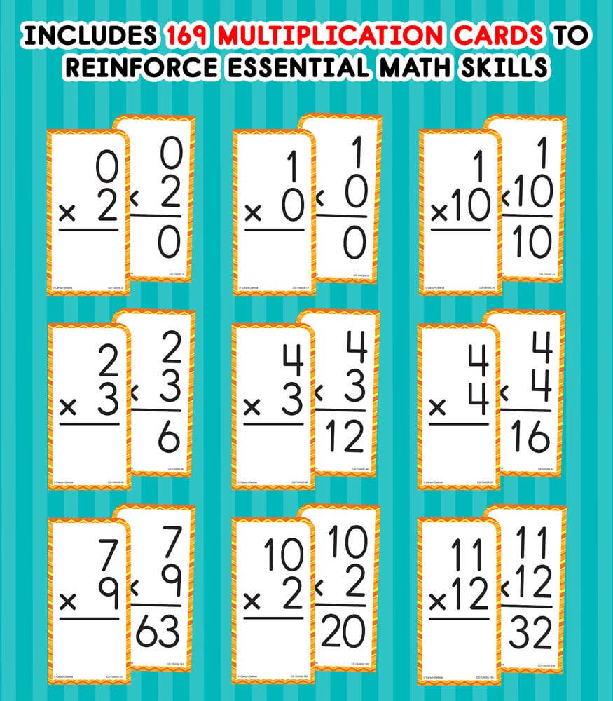 Carson Dellosa’s Multiplication Flash Cards All Facts 0 to 12 presents an easy fun way kids to practice essential math skills. --This set features 169 full-color, self-checking flash cards 1 bonus activity card with learning game ideas. These 2.91'' x 5.82'' cards have rounded corners easy sorting large, bold numbers easy reading. --Flash cards help improve kids’ concentration active recall skills with frequent practice. Pair these cards with our addition, subtraction, division flash cards.