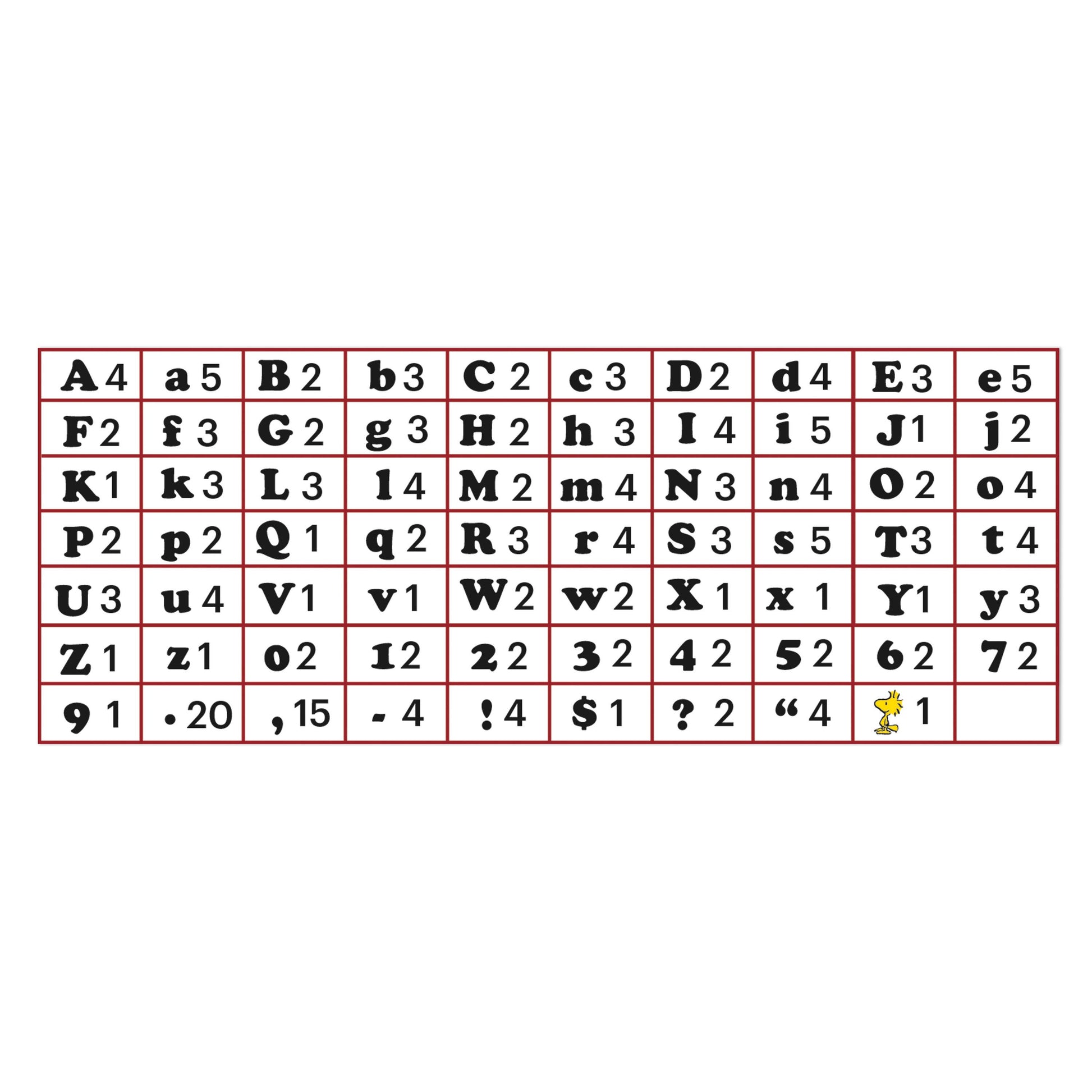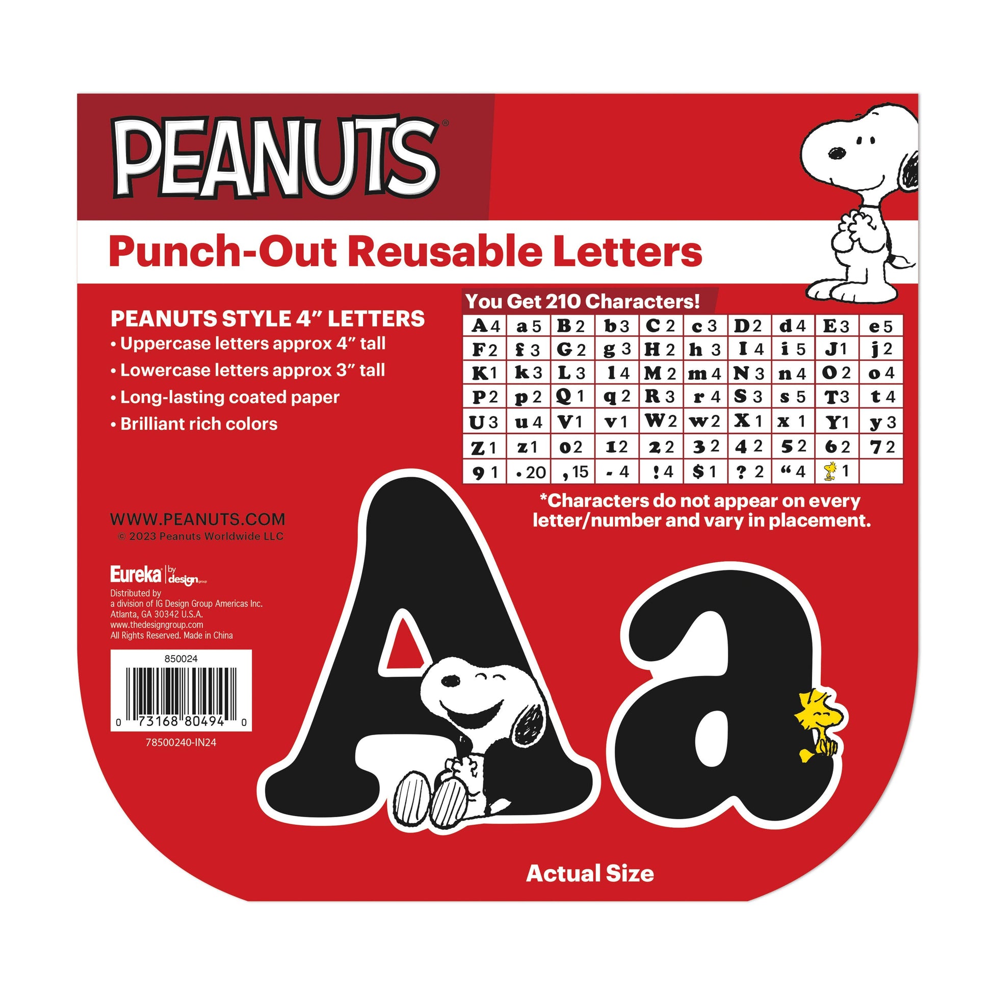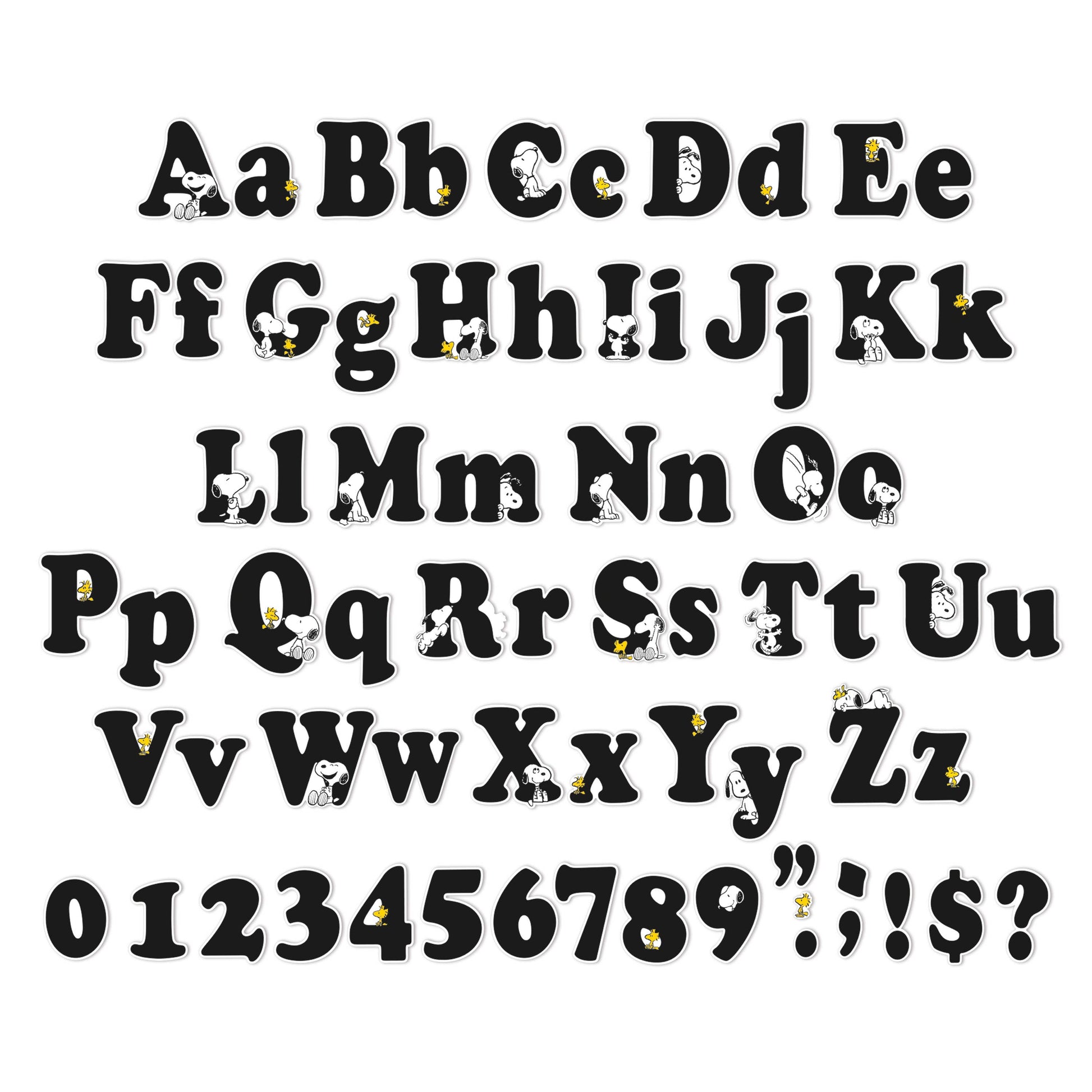 •What's Included - Set includes 210 Peanuts-style letters, including uppercase letters, lowercase letters, numerals, punctuation marks, and symbols. Design element does not appear on every letter/number and varies in placement.
