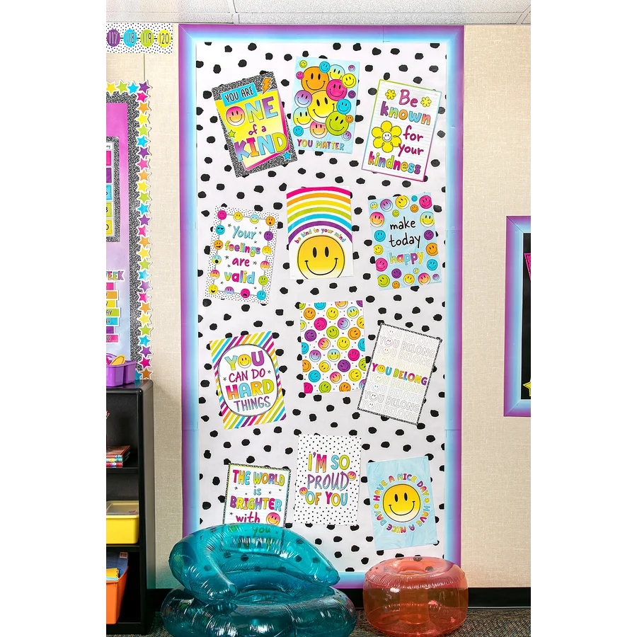 Use this Purple and Blue Color Wash Straight border trim to liven up your classroom! Create fresh looks for bulletin boards, windows, walls, and class projects. Mix and match with coordinating products (stickers, notepads, awards, etc.) for a classroom theme. Each pack has 12 pieces (3'' x 35'') for a total length of 35 feet of trim!