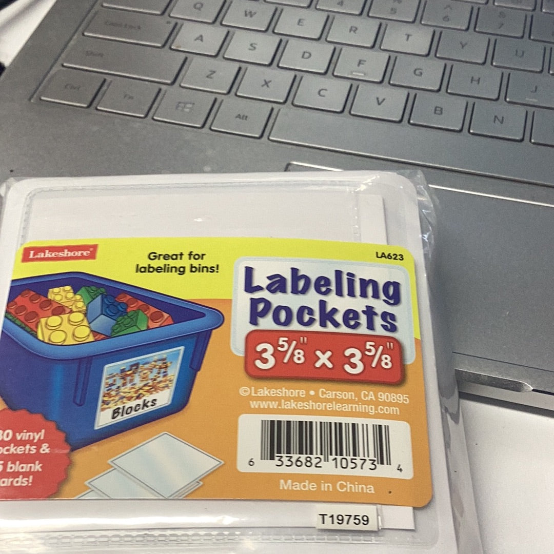 Now you can identify materials and supplies in an instant...with our super-convenient labeling pockets! Just slip a labeling card into each pocket, then stick the self-adhesive pockets onto drawers, cubbies, cots and more. Sets are available in 3 different sizes; each set includes 30 pockets and 35 blank labeling cards. (3 5/8 x 3 5/8)