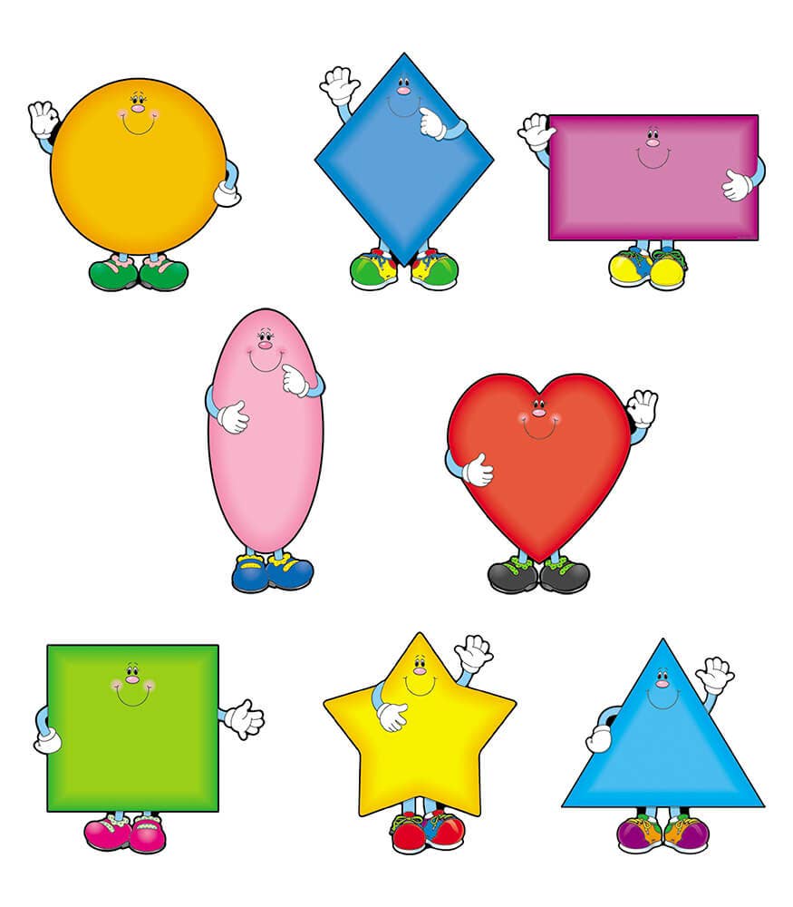 This whimsical, shape-themed bulletin board set includes: -- *8 shapes (largest measures 6.75” x 16”) *8 shape words *16 shape accents (2 per shape) *A resource guide