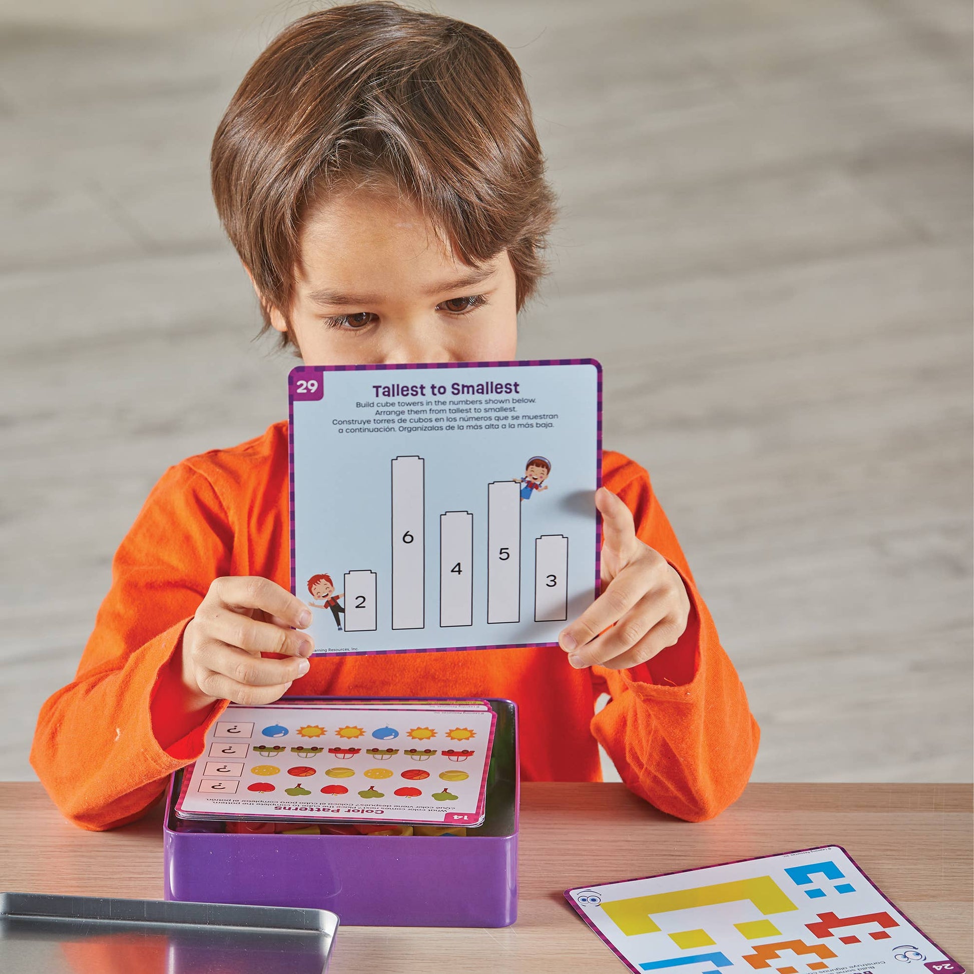 Hands-on toys meet school-ready learning activities in one compact package! This set's 50 MathLink Cubes and 40 workbook-style activities help kids build essential math skills: learn skip counting, one-to-one correspondence, addition and subtraction, and more! Each set comes with a carrying case for easy cleanup or on-the-go play. Age 4+ | Grade PreK+