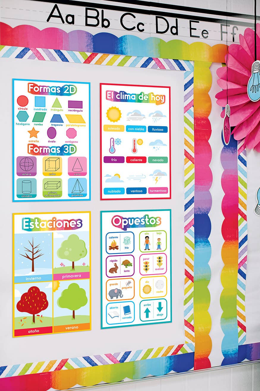 Create an educational learning space with the Carson Dellosa Spanish Early Learning Posters set! The 12-piece educational poster set is great for Spanish language preschool learning and kindergarten learning, and features vibrant visual references for preschool and kindergarten math, phonics, and science topics like the alphabet, colors, numbers, 2D and 3D shapes, days of the week, months of the year, today's weather, seasons, farm animals, opposites, parts of the body, and emotions. Made from durable material, these classroom posters are great for classroom décor, wall décor, and door décor, and can be used in any classroom or learning space for young Spanish language learners. Education happens everywhere, and Carson Dellosa strives to provide the tools needed to inspire learning everywhere it happens.