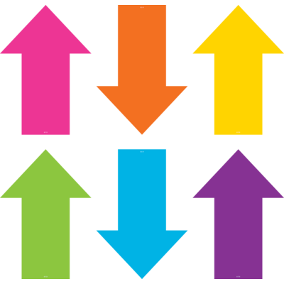 Help students quickly identify where to sit or stand. These vinyl floor markers stay on strong but can be removed easily and used again and again. Great for social distancing! The markers attach firmly to smooth, untextured floors and other surfaces. Each marker measures approximately 8". 6 colors; 6 arrows per pack.