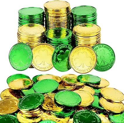 - Material: The plastic St. Patrick's Day gold coins are made of high-quality plastic. They are durable, not easy to damage or deform, reusable, safe, odorless, have a glossy surface, and are not easy to fade, making them suitable for long-term use