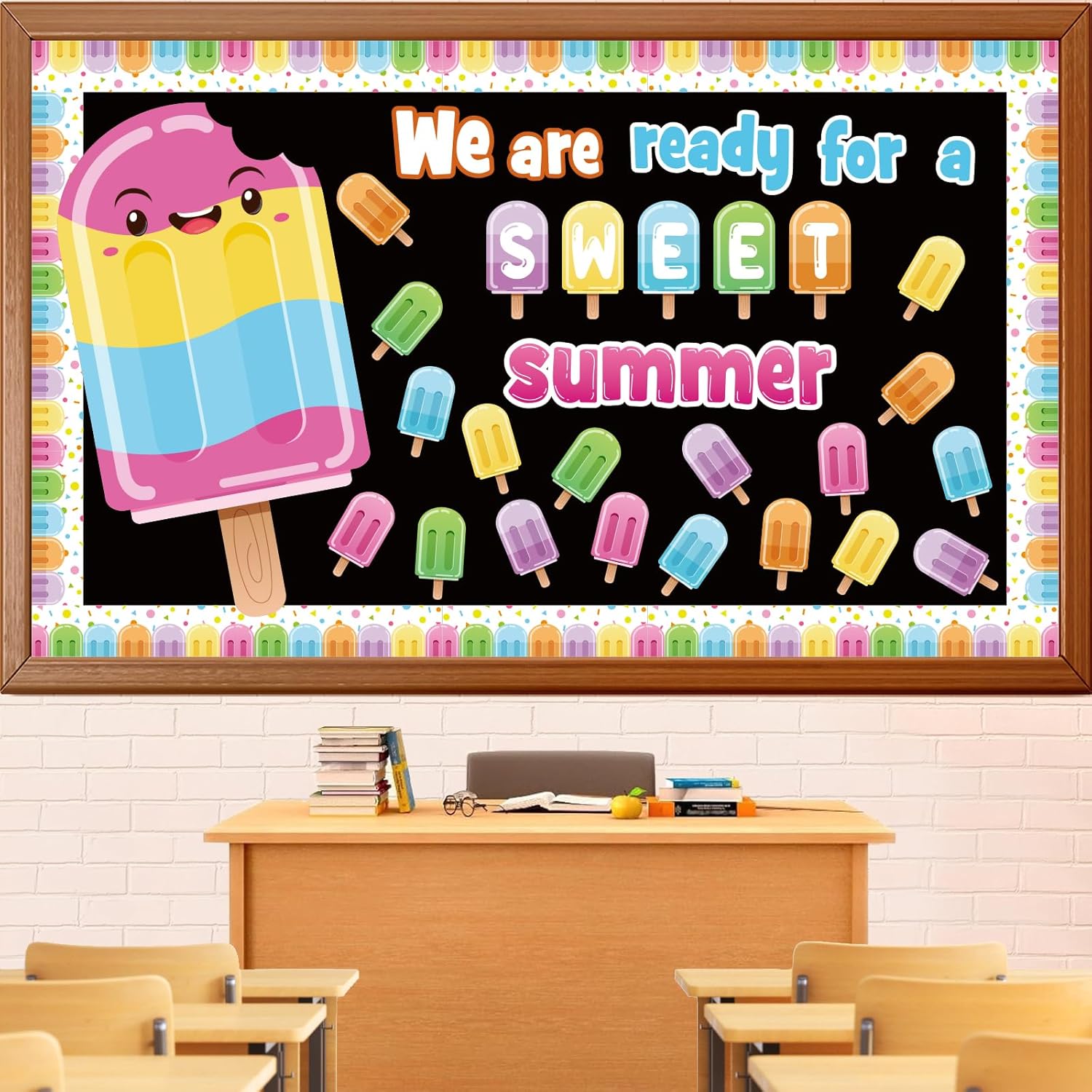 - Package Includes: This summer ice pop bulletin board decorations includes a ‘We Are Ready For A Sweet Summer’ letter cutout, A big colorful ice pop cutout, 18 small ice pop cutouts, 20 popsicle bulletin board borders, and 60 glue points. The ample quantities enable you to exercise your creativity and transform your space into a vibrant summer display