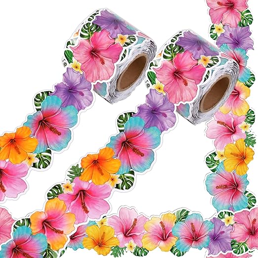 - Easy to Install: These tropical hibiscus flower cutouts and borders can be trimmed into desired sizes and be adjusted or replaceed easily, simple for your different needs, making decorating straightforward and hassle-free. The laminated surface is smooth and will not be damaged by applying it with glue dots