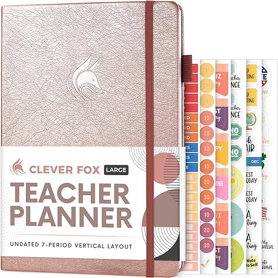 - ALL YOU NEED FOR LESSON PLANNING & MORE: Clever Fox Undated Teacher Planner is a large format school year planner developed for teachers who need an efficient tool for lesson & extracurricular planning all year round. Inside, you will find spacious weekly spreads for detailed lesson planning, monthly calendars and planning pages, student checklists, a communication log, school events schedule, and dedicated pages for storing student information and important dates.