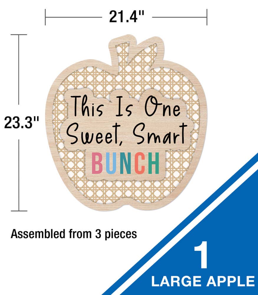Create a positive, welcoming environment in your classroom with Carson Dellosa’s True To You Motivational Bulletin Board Set. The 59-piece bulletin board set includes a header assembled from 2 pieces (assembled size: 25.2" x 9.2"), a large apple, assembled from 3 pieces (assembled size: 21.4" x 23.3"), 15 medium apple cutouts (4.6" x 5"), 15 medium heart cutouts (5.2" x 5"), 6 small apples cutouts (2.5" x 2.7"), and 18 small heart cutouts (largest: 2.5" x 2.4", smallest: 2.3" x 2.2"). Perfect for bulletin board, white board, and cork board displays, the 59-piece modern classroom décor set features a “This Is One, Sweet, Smart Bunch” inspirational message to help encourage students while showcasing their work throughout the school year.