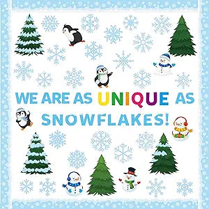 - Package Includes: You will get 21pcs ‘we are as unique as snowflake’ letter cards, 48pcs snowflake pattern cards in 24 designs, 17pcs winter element pattern cards in different designs, 30pcs border trim and 10 sheets of glue point dotes, 126pcs in total.
